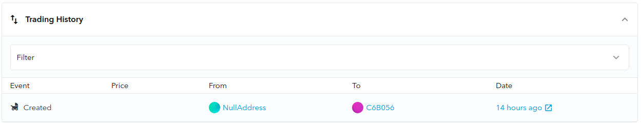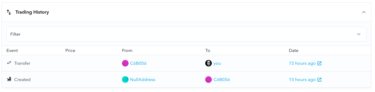 But what happens next? The minting transaction would look something like this at the bottom of the token entry on OpenSea.io: